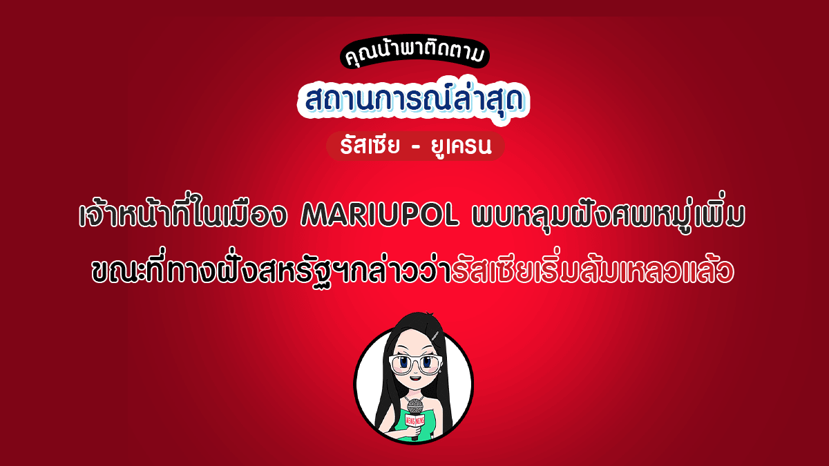 สถานการณ์การสู้รบยังคงดำเนินต่อไปและเกิดความสูญเสียมากขึ้นค่ะ เนื่องจากพบหลุมฝังศพหมู่ ถึงแม้สหรัฐฯชี้ว่า รัสเซียเริ่มล้มเหลวแล้ว